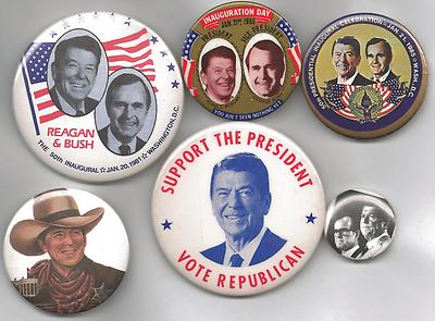Title (ebay affiliate link): 6 Outstanding Ronald Reagan Buttons, 3 are Inaugurals, 4 are Jugates