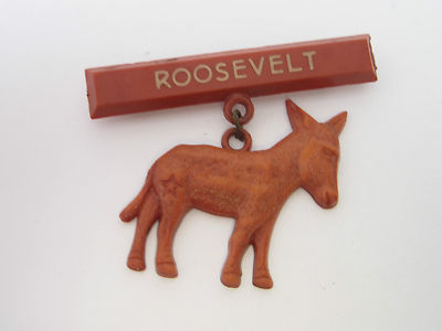 Bakelite Vintage ROOSEVELT Presidential Campaign Pin w/ democrat donkey