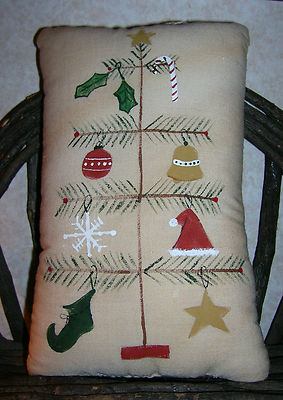 Primitive CHRISTMAS Handpainted Wallhanging Pillow Folk Art Feather Tree Decor