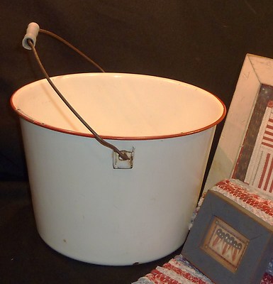 Title (ebay affiliate link): METAL BUCKET PAIL WHITE W/ RED ENAMELWARE, UTILITY 2 GALLON, GARDEN PRIM DECOR