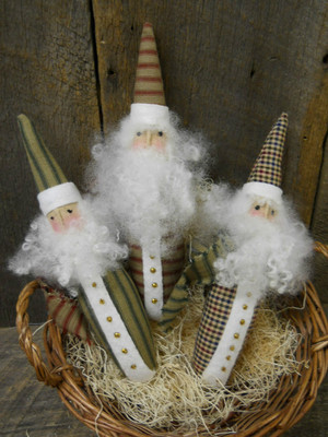 3 Primitive Folk Art Pencil Santa Ornies / Bowl Fillers Christmas