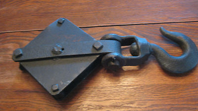 Vintage Primitive cast Iron hook pulley cable block heavy cast iron barn hook