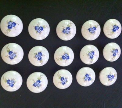 Title (ebay affiliate link): 15 Porcelain Antique White&Blue Flower Furniture Cabinet Handles or Drawer Knobs
