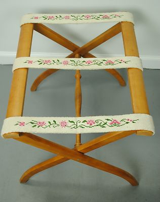 Title (ebay affiliate link): MID CENTURY VINTAGE REGENCY MAPLE NEEDLEPOINT FOLDING LUGGAGE STAND RACK MODERN