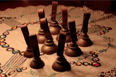 Title (ebay affiliate link): Vintage/Antique Brass and Leather Musical Hand Bells