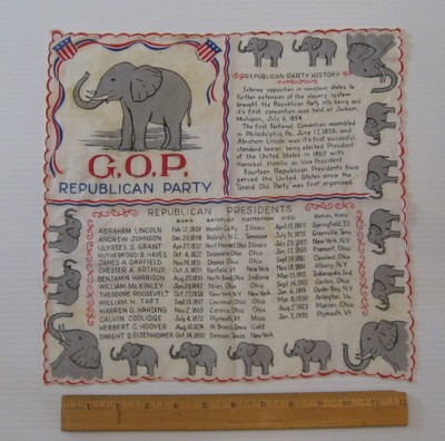 1960's Republican Party Hanky Handkerchief Lists Presidents (Eisenhower) History