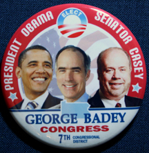 PENNSYLVANIA OBAMA, CASEY, GEORGE BADEY BUTTON. 7TH CONG. DIST. PA