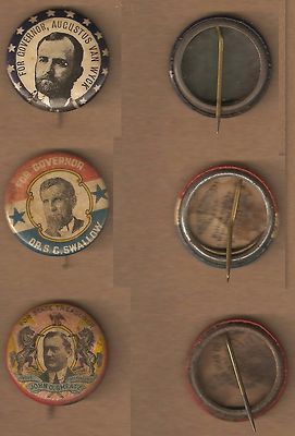 Title (ebay affiliate link): 3~PENNSYLVANIA POLITICAL PINS~1910c ~VAN WICK~SHEATZ~SWALLOW~Advertisement Back