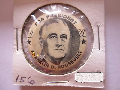 Title (ebay affiliate link): Franklin D Roosevelt FDR For President Political Pin Button V Victory