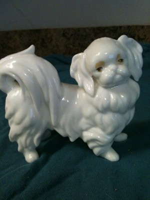WHITE MILK GLASS DOG FIGURINE - White with tan eyes