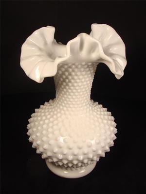 Title (ebay affiliate link): Vintage FENTON Ruffled HOBNAIL White Milk Glass VASE Signed
