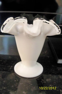 Title (ebay affiliate link): Vintage Fenton Silver Crest Milk Glass Vase Compote-4" Tall-Ruffled Top-EUC