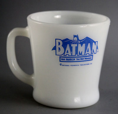 Title (ebay affiliate link): ESTATE - VINTAGE ANCHOR HOCKING FIRE KING MILK GLASS MUG BATMAN GRAPHICS 1960s