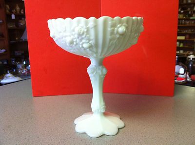 FENTON MILK GLASS COMPORT ROSES BEAUTIFUL COND COMPOTE BASE PATTERN PEDESTAL