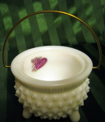 Title (ebay affiliate link): Fenton White Milkglass Hobnail basket with metal handle