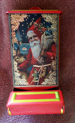 Vintage Christmas Tin Metal Hanging Match Wall Holder Safe