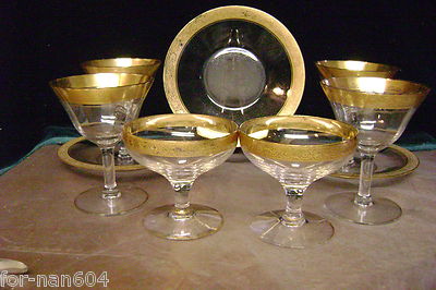 9 PCS. DEPRESSION GLASS ELEGANT GOLD TRIM
