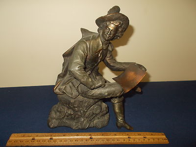 ANTIQUE ANSONIA 9 3/4"FIGURAL SPELTER METAL MANTLE SHELF CLOCK TOPPER NO-RESERVE