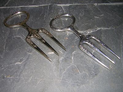 Title (ebay affiliate link): RARE PAIR OF EDWARDIAN SILVER PLATE MUFFIN / TOASTING FORKS