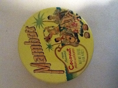 Title (ebay affiliate link): Vintage Mambo Macaroons Tin Hammonton New Jersey Island Scenes "Carmen Miranda"