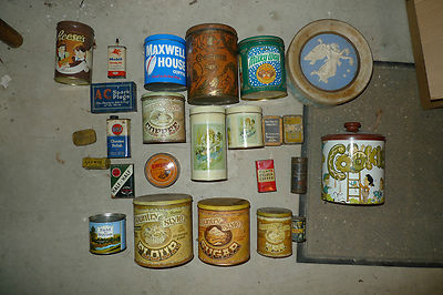 Title (ebay affiliate link): LOT OF TINS VINTAGE ADVERTISING MAXWELL HOUSE GULF AC SPARK PLUGS MOBILE