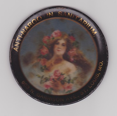 vintage antique tin ashtray used anti-narcotin sanitarium st louis mo