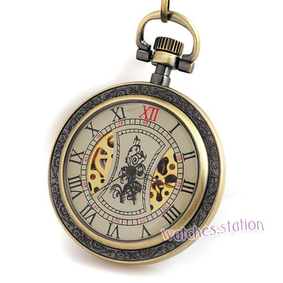 Title (ebay affiliate link): Antique Bronze Mechanical Pocket Watch Flat Case Chain on Necklace Clock