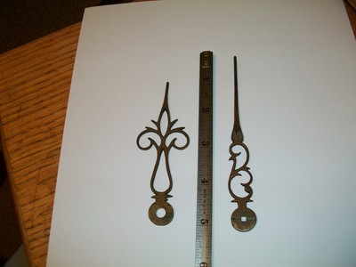 Title (ebay affiliate link): 2 Very Old Antique Large Thick FANCY Hand Made Solid Brass Clock Hands
