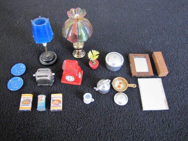 Antique Doll House Accessories Vintage Lamps Scale Food