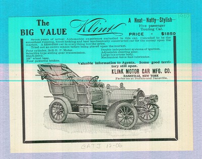 1907 Klink Touring Car Ad, DANSVILLE, NEW YORK, WHY PAY MORE ?