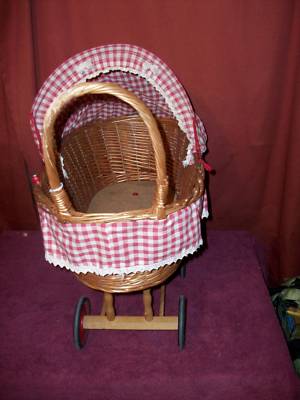 Vtg OTTO SIMON Doll Wicker Buggy Pram Germany Poland