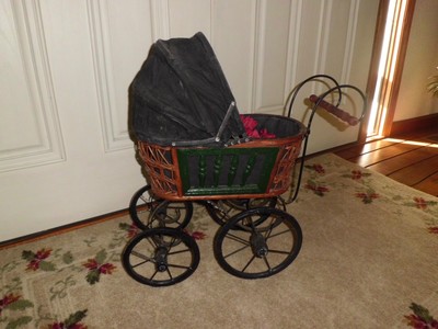 Title (ebay affiliate link): NR PRIM ANTIQUE LOOKING BABY DOLL TEDDY BEAR BUGGY