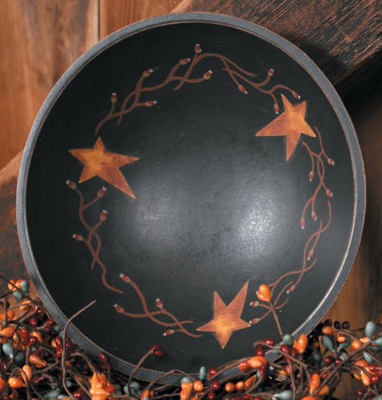 Title (ebay affiliate link): Primitive Wooden Painted Star And Berry Vine Black Bowl