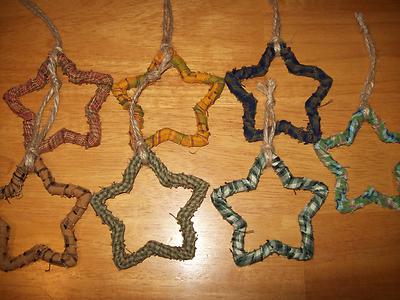 Primitive style rag star ornaments, set of 7