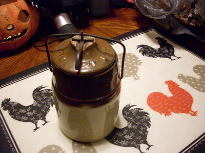 Title (ebay affiliate link): Nice vintage The Weir two toned, dark brown and beige canning jar, wire handle