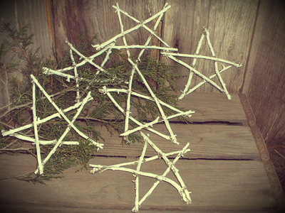 Title (ebay affiliate link): Primitive Christmas Decor Ornaments Ornies Rustic White Wood Branch Stars ~DN