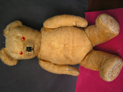 VINTAGE STRAW FILLED LARGE JOINTED MOHAIR TEDDY BEAR