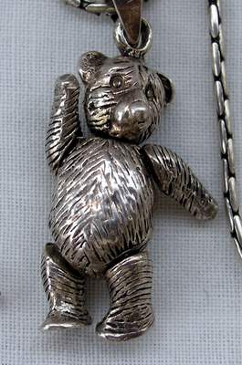 Rare Jointed Teddy Bear Superb Details 925 Silver Mark