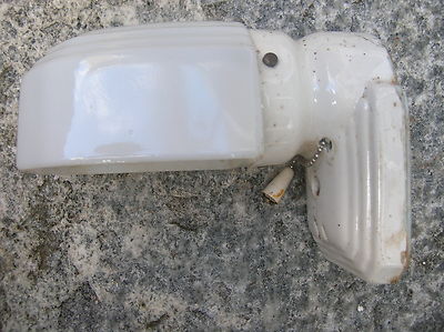Title (ebay affiliate link): VINTAGE ART DECO SCONCE~MACHINE AGE~MILK GLASS SHADE~VINTAGE FIXTURE~ART DECO~