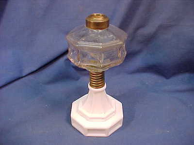 Title (ebay affiliate link): 1873 VICTORIAN Era WHITE MILK GLASS Base OIL LAMP With PANELED Glass FONT