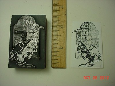 Title (ebay affiliate link): KITTY CAT laps up SPILT MILK in GLASS JUG * Letterpress Printers Block