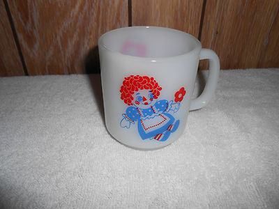 Vintage Milk Glass Mug - Raggedy Ann and Raggedy Andy