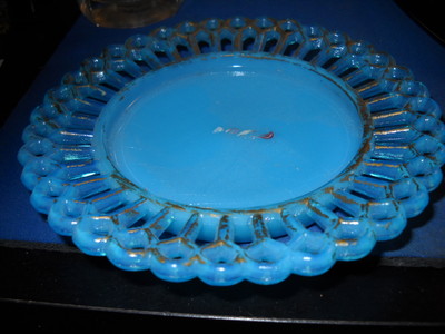 Vintage Open Edge Blue Milk Glass 5 1/2' dish- Opalescent