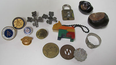 Title (ebay affiliate link): Mens Vintage Junk Lot - Key chain - buttons - Grand Lodge pins - Ring