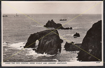 p455] VINTAGE RPPC OF ENYS DODMAN ARMED KNIGHT & LONGSHIP LIGHTHOUSE,LANDS END
