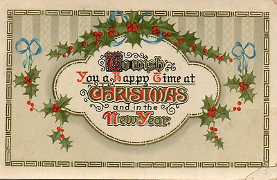 VINTAGE CHRISTMAS GREETINGS postcard TO WISH YOU A HAPPY TIME 1914