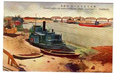 Title (ebay affiliate link): CHINA 1920' PC HARBIN BOAT AND SHIPS IN SUNGARI RIVER