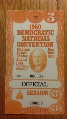 Title (ebay affiliate link): 1980 Democratic National Convention OFFICIAL Ticket #5 PRESIDENT Jimmy Carter