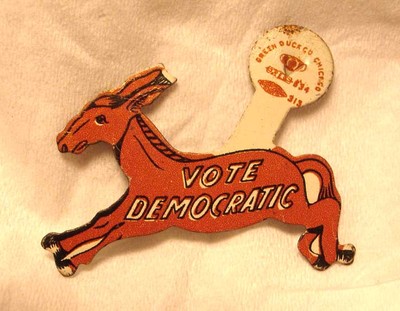 "Vote Democratic" Political Donkey,Mule Pin,Tab by Green Duck Co.