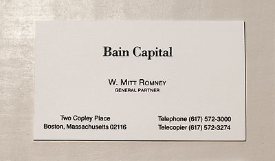 Mitt Romney Business Card, Bain Capital, Circa 1992.